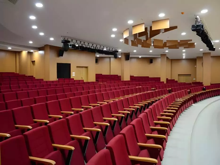 Ergonomically designed auditorium seating, providing comfort for all attendees.