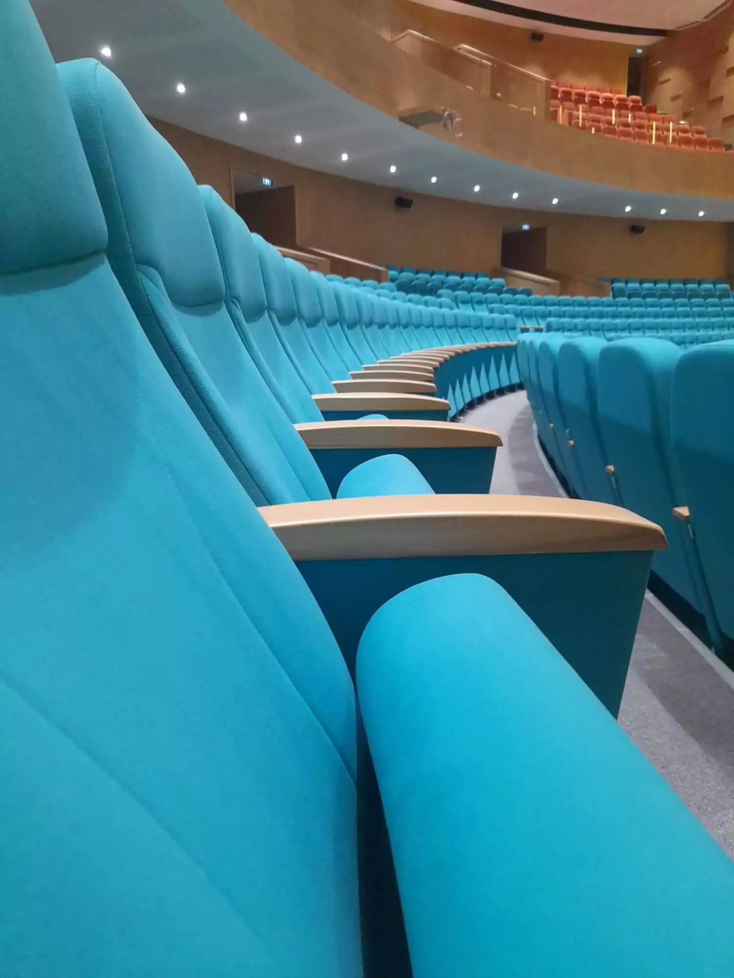 Premium seating solutions for an auditorium, designed for long-term use and comfort.
