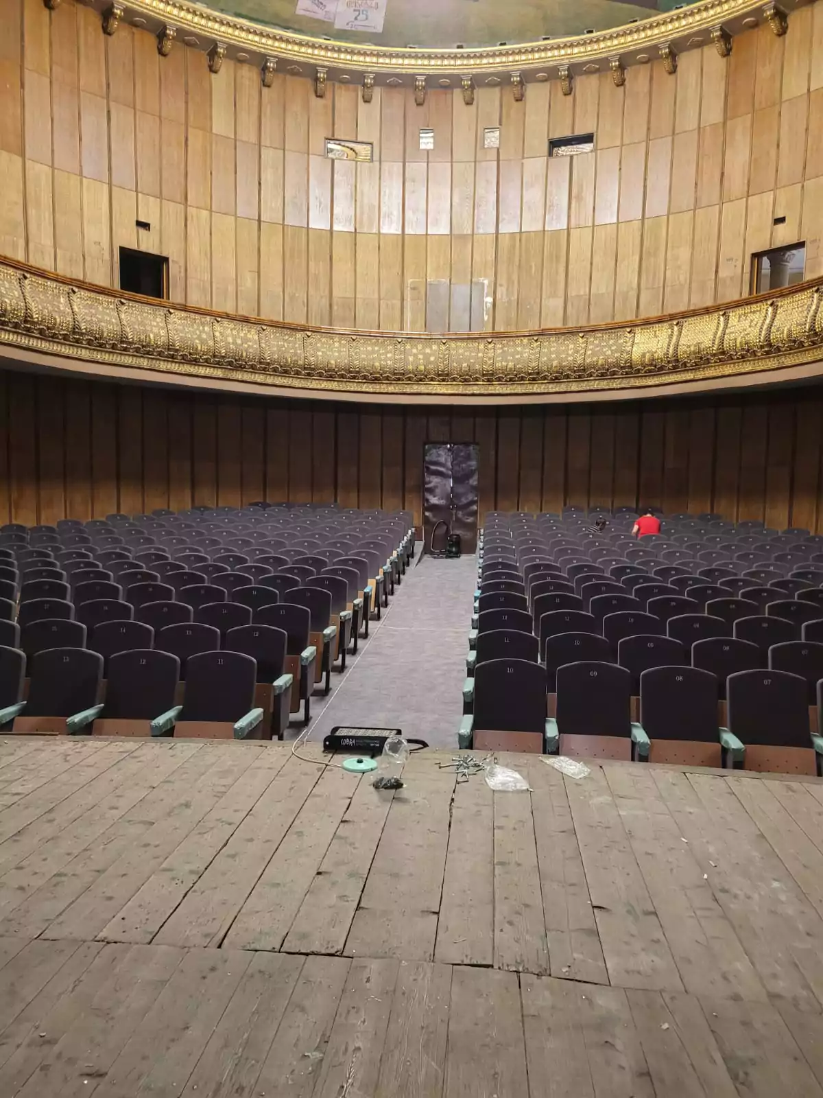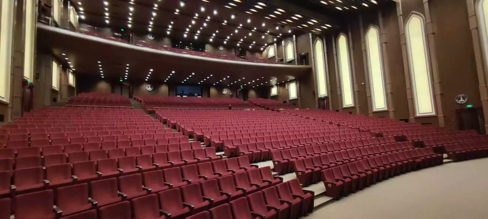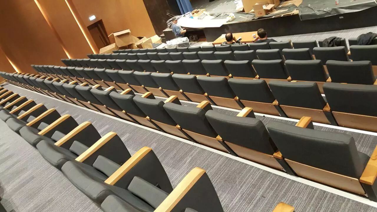 Auditorium seating project featuring durable, European-standard chairs for large gatherings.