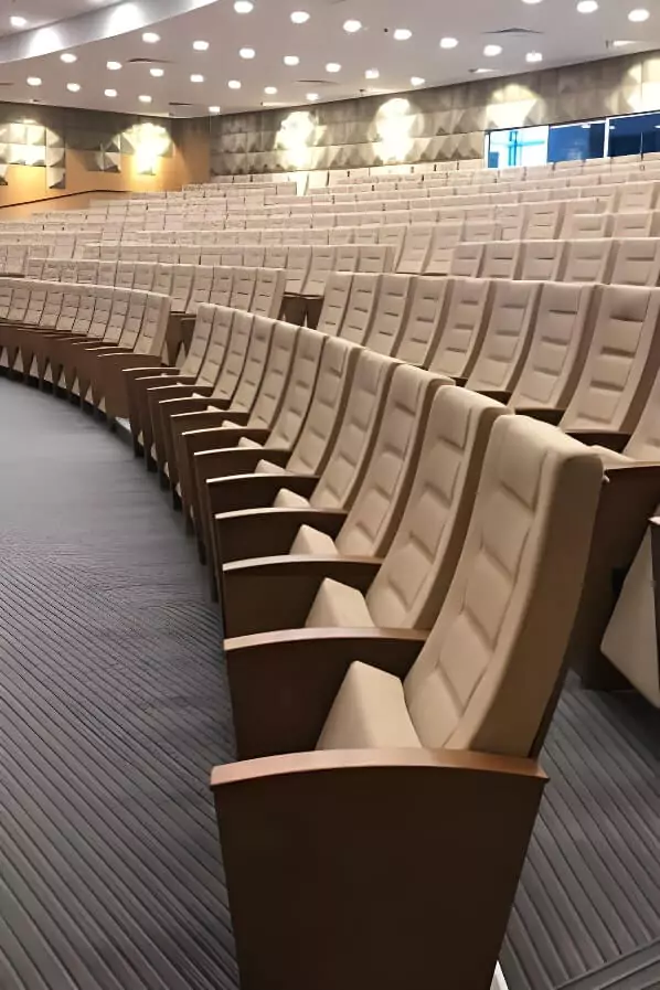 Ergonomic seating solutions for a large auditorium, designed for long-term use and comfort.